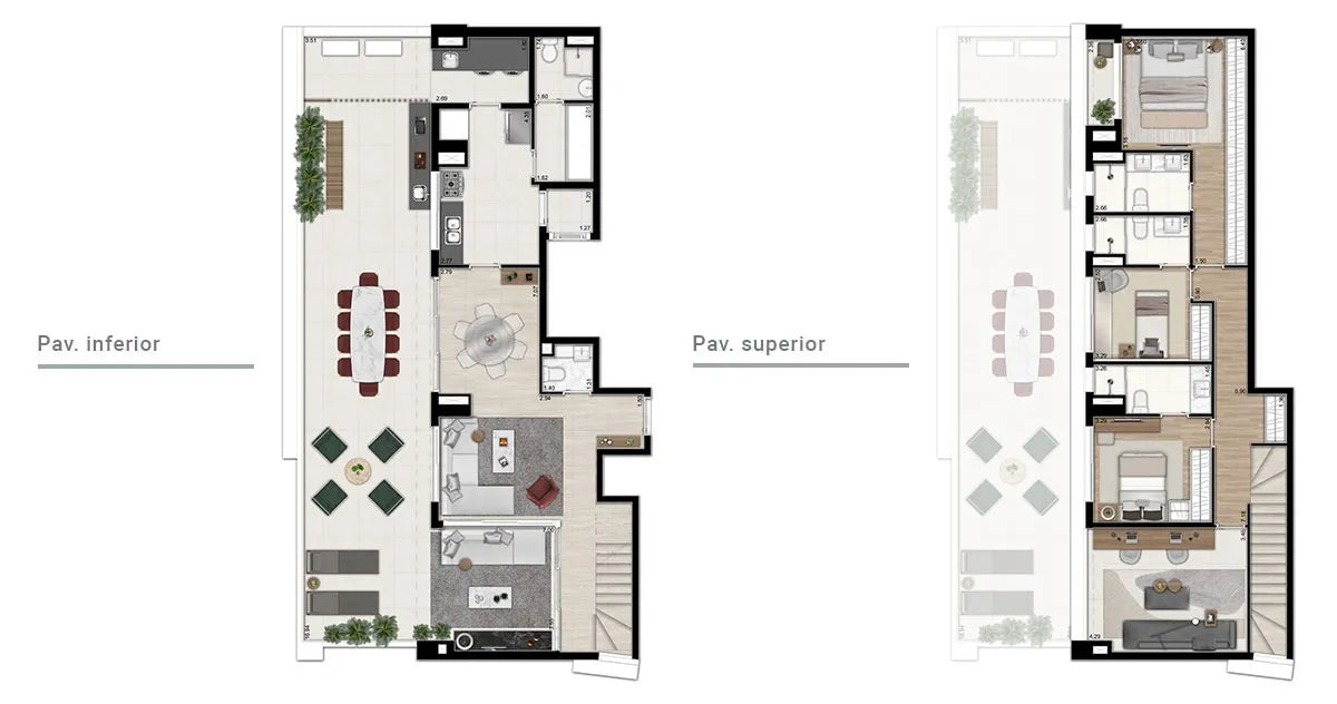 - Unidade Garden – 246m²: 2 suítes, home office, terraço privativo e 2 vagas.